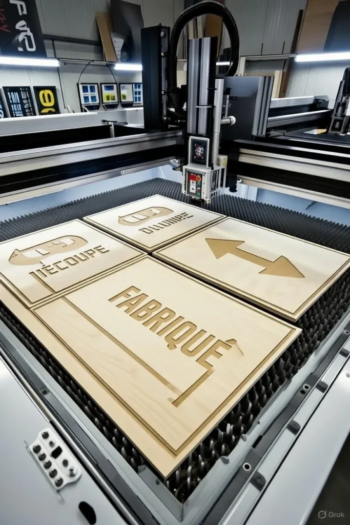 Grâce à une technologie de découpe laser de haute précision, nous réalisons des panneaux de signalétique, éléments décoratifs et supports de communication parfaitement adaptés à vos besoins, qu’il s’agisse d’un projet ponctuel ou d’une production en série.